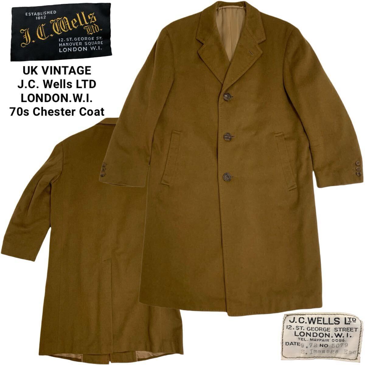 > UK VINTAGE イギリスヴィンテージ J.C. Wells LTD LONDON.W.I. 70s 1972年 MADE IN UK ビスポーク チェスターコート キャメル アーカイブ