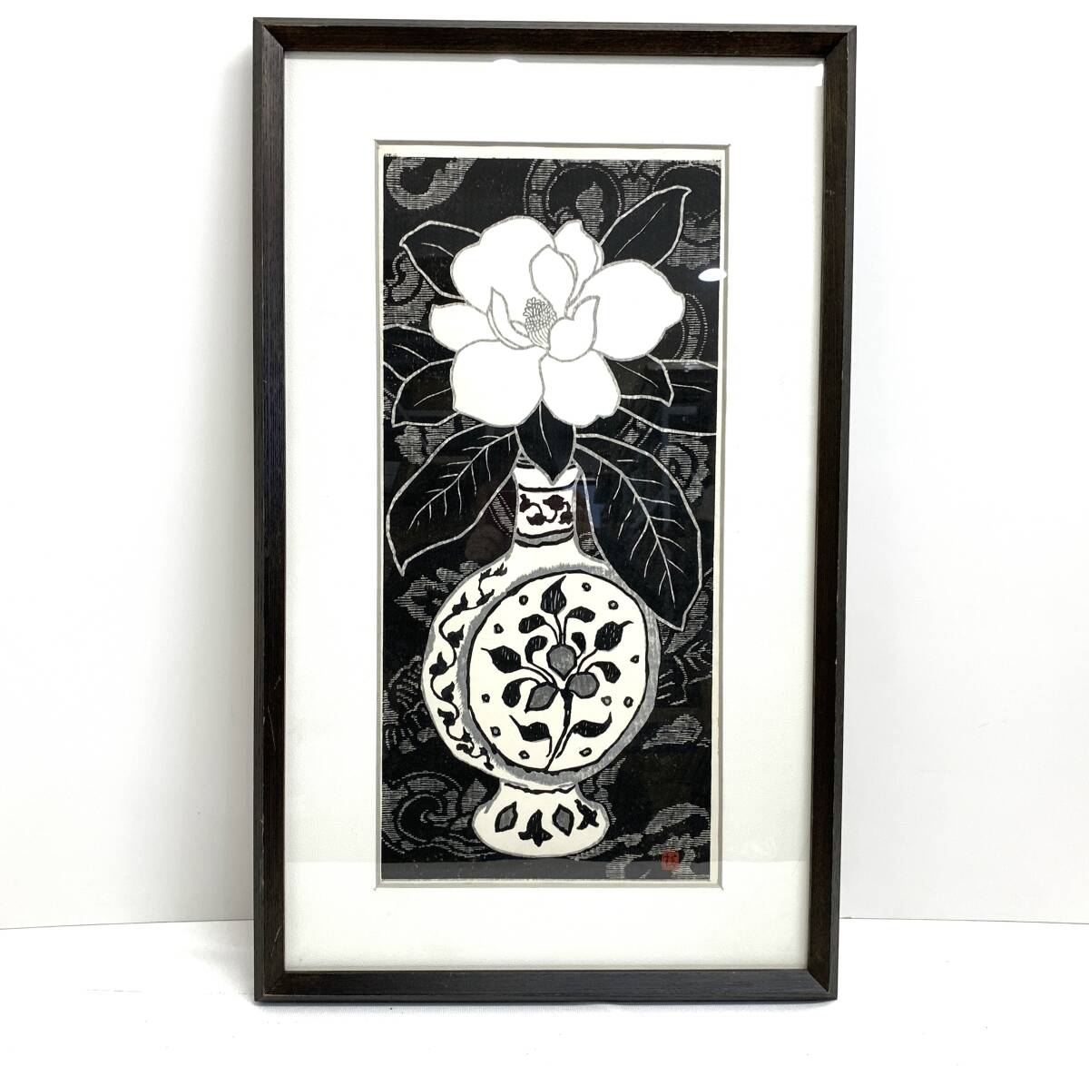- 〇1039 彫刻家 横田七郎 「白い花」 木版画 額装 真作保障