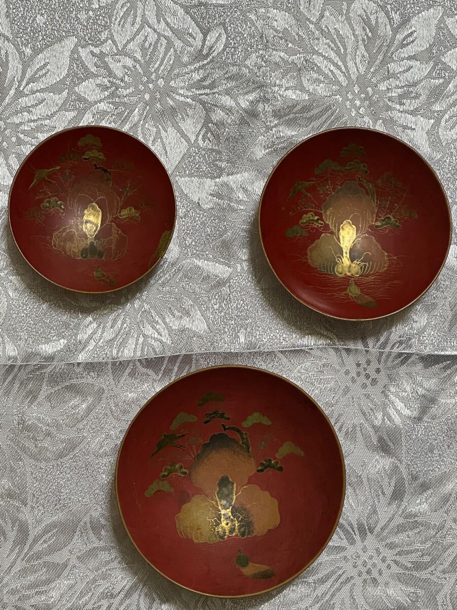 - 盃 漆塗り 小、中、大 3個 江戸期