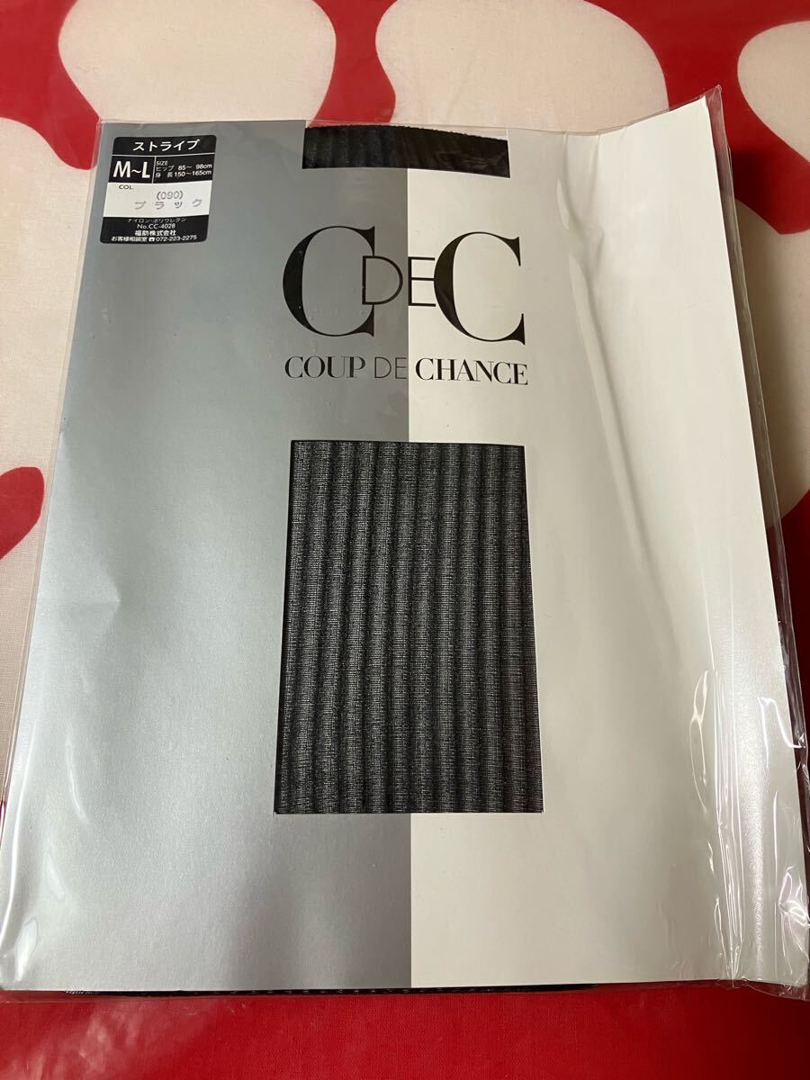 - C DE C coup de chance ストライプ ブラック 福助 panty stocking 柄 デザイン 黒 編み パンティストッキング パンスト