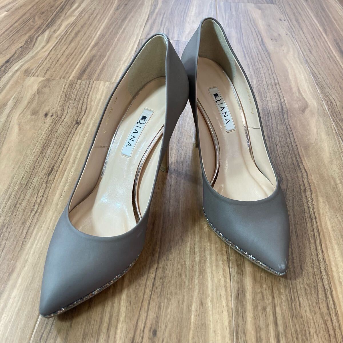 - YT3056 DIANA ダイアナ グリッターパンプス ポンテッドトゥ グレージュ ピンヒール サイズ24cm ヒール10cm フォーマル パーティー 結婚式
