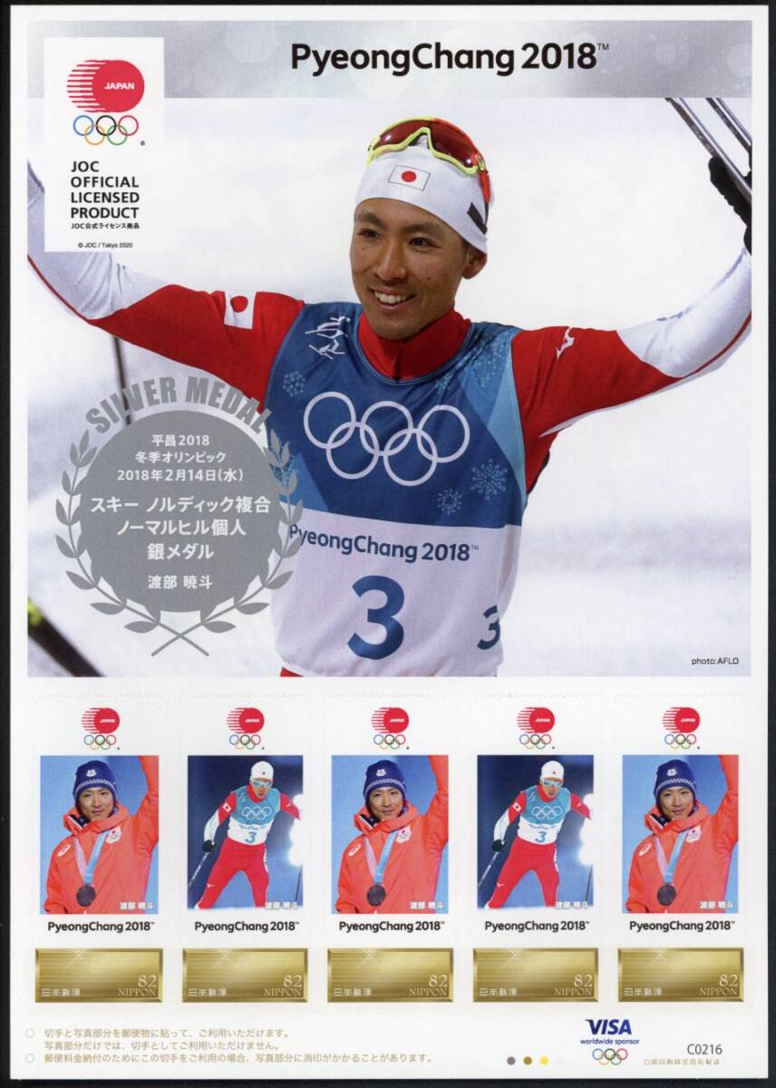 - fu225 【フレーム切手】『渡部暁斗』平昌2018冬季オリンピック スキー ノルディック複合 ノーマルヒル個人 銀メダル
