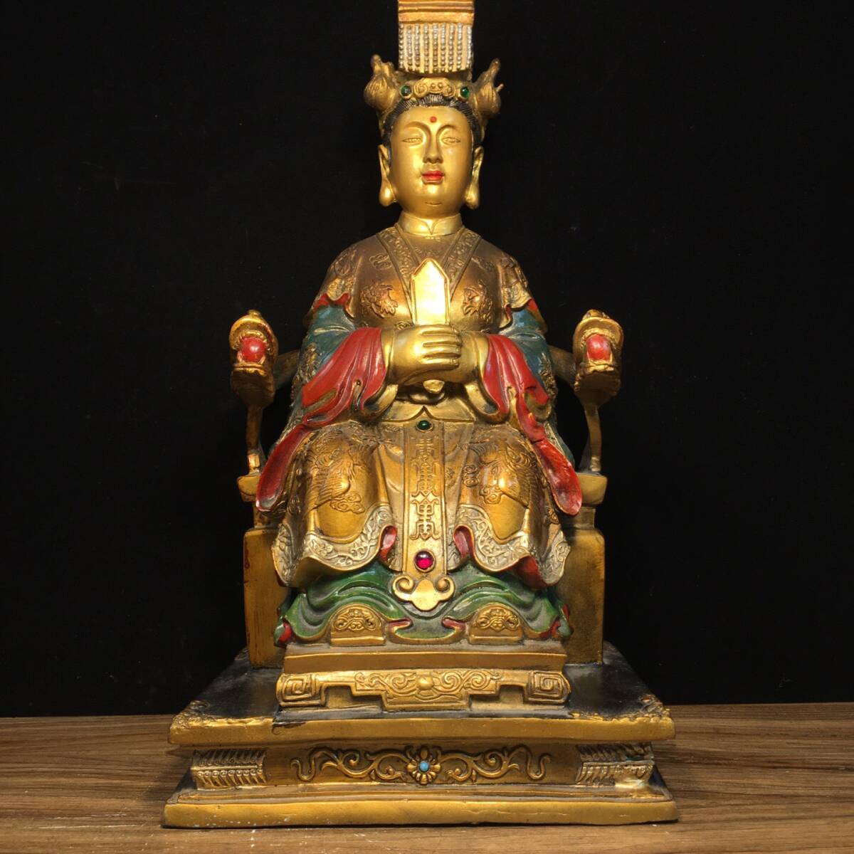 - 『館蔵珍品 銅製 金鍍 彩繪 王母娘娘像』置物 賞物 貴重物品 収蔵品 中国古美術