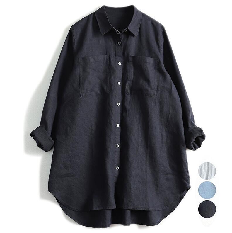 - 新作春新品 レディース シンプル ゆったり 無地 リネン 長袖 シャツブラウス 大人 チュニック M-2XLサイズお色選択可