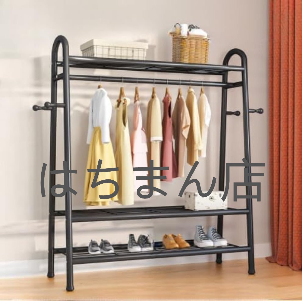- ハンガーラック パイプハンガーラック 頑丈 洋服ラック 金を太くします 多機能 大容量 ベランダハンガー 衣類収納ラック (黒です,135cm)