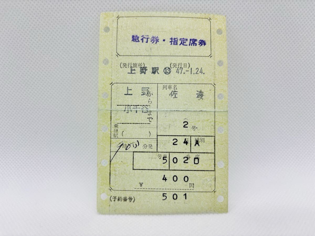 - 国鉄 マルス券 急行佐渡2号 上野→小千谷 02D席 初期型 縦型 急行券 軟券 常備券 補充券 切符 昭和レトロ 169系