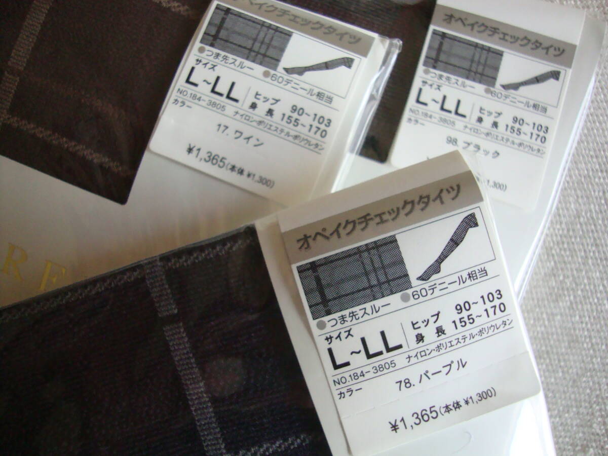 > 新品 RALPH LAUREN ラルフローレン オペイク チェック タイツ 3色セット L-LL パープル ワイン ブラック 60デニール ナイガイ