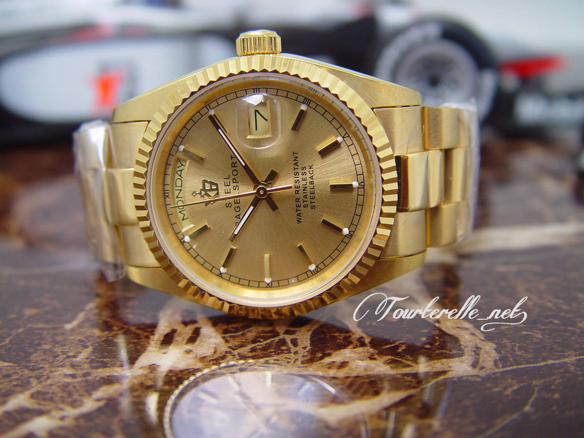 - ☆XB-Steel-DDE/金無垢風/GD文字盤/自動巻/紳士用☆新品☆azu00w