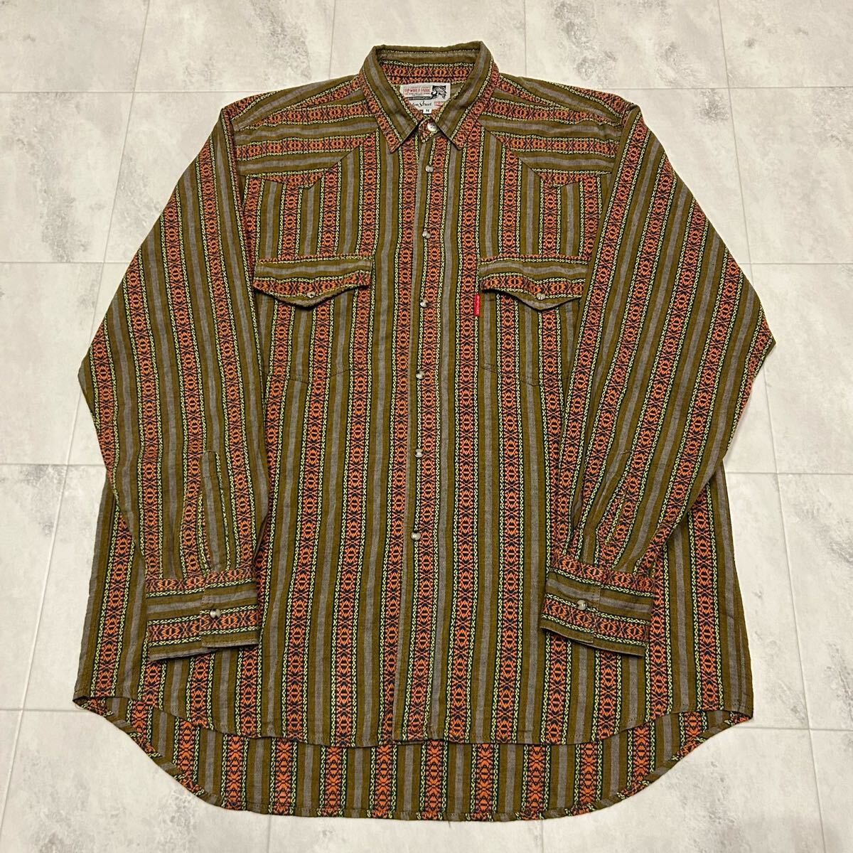- BIG JOHN ビッグジョン Burbon Street GRATEST COLOR WORLD FABRIC 総柄 レトロ アート ビンテージ ウエスタン 長袖シャツ