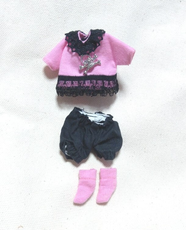 - 1/12サイズ お洋服 アウトフィット 3点セット ピンク×黒 ブラック ぷちパンク