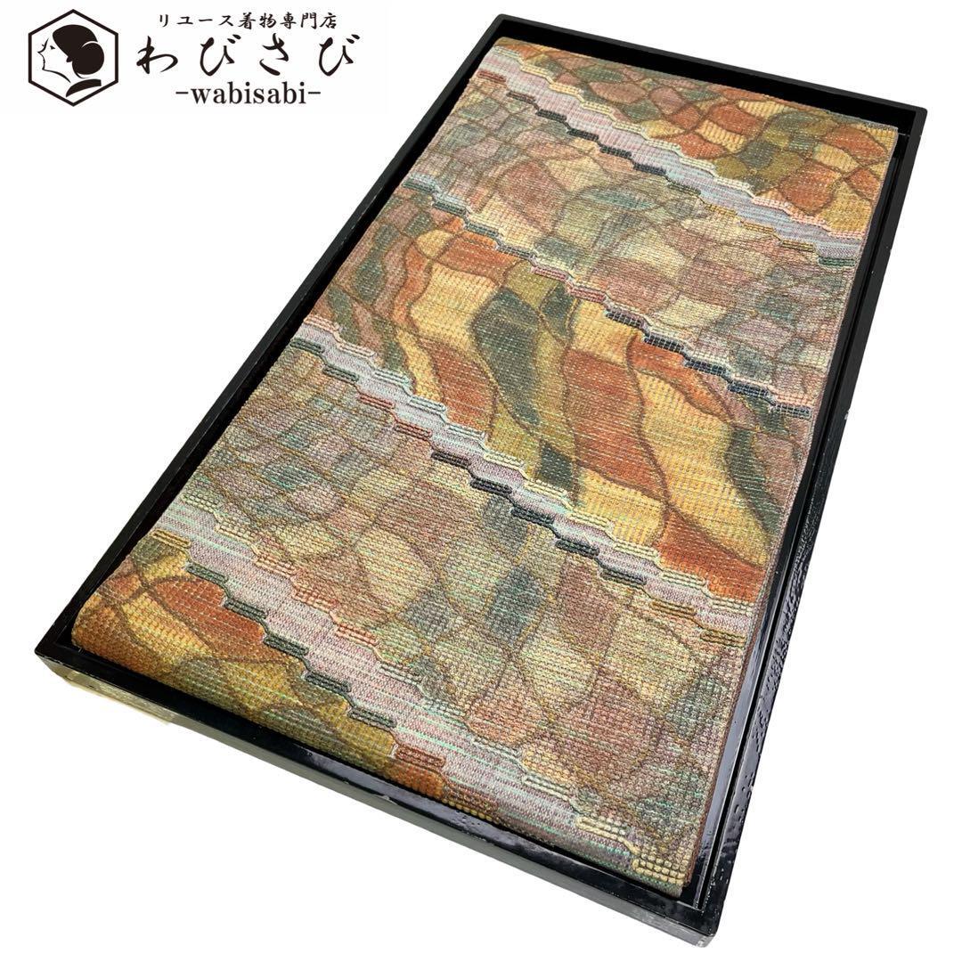 - 袋帯 瓦模様 斜め柄 立体的な織模様 カジュアル O-4801 着物 きもの kimono 和服 和装 中古 リサイクル着物 【送料無料】