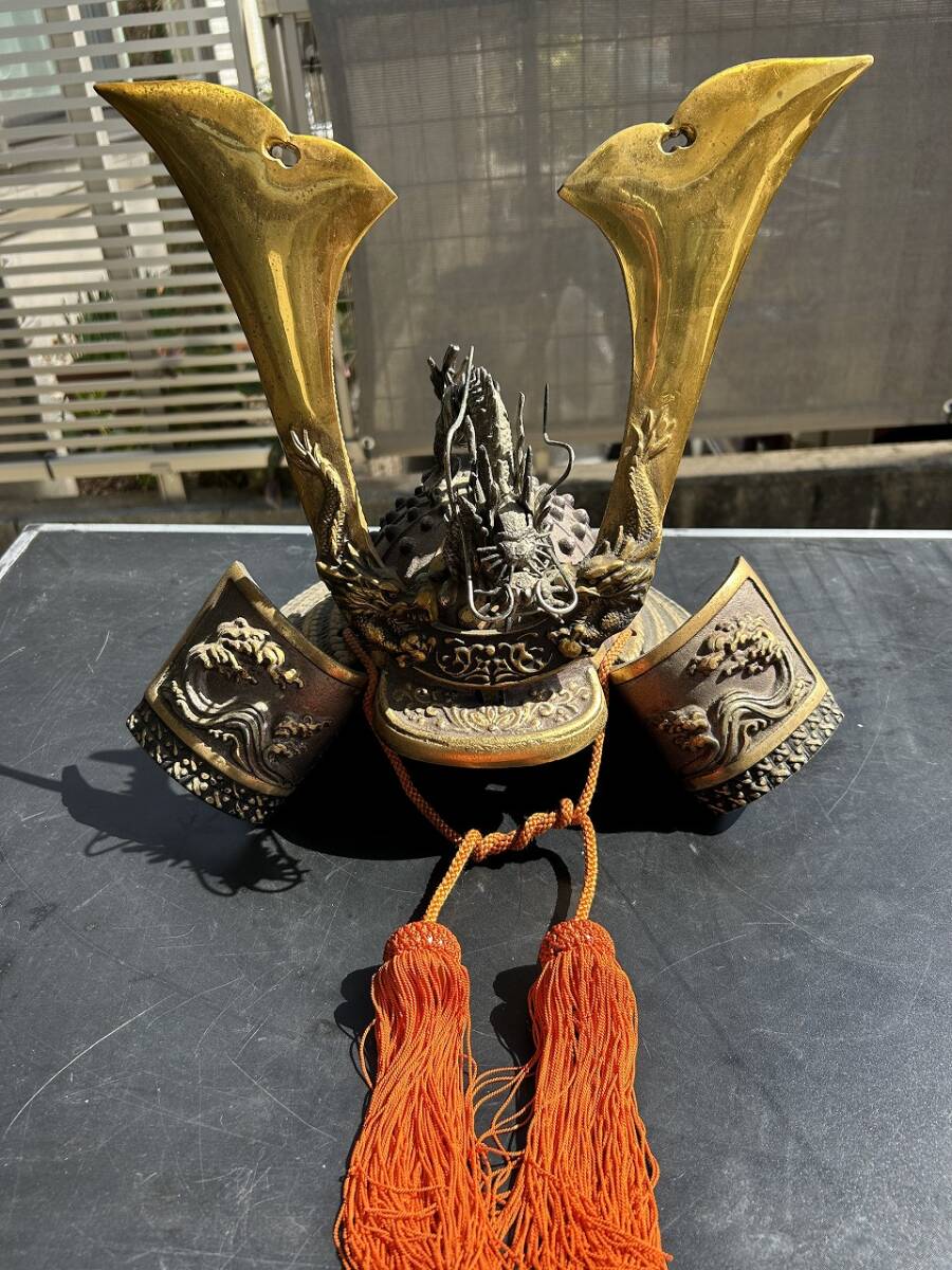 - D 兜 鉄兜 五月人形 節句 季節 置物 インテリア レトロ 美術 工芸品 中古 こどもの日