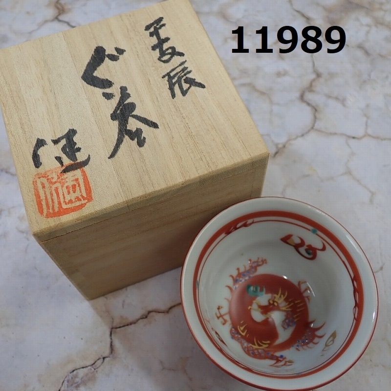 > ■FK-11989 九谷焼 人気作家 赤地健 干支 辰 たつ ぐい呑 ぐいのみ 盃 20250304