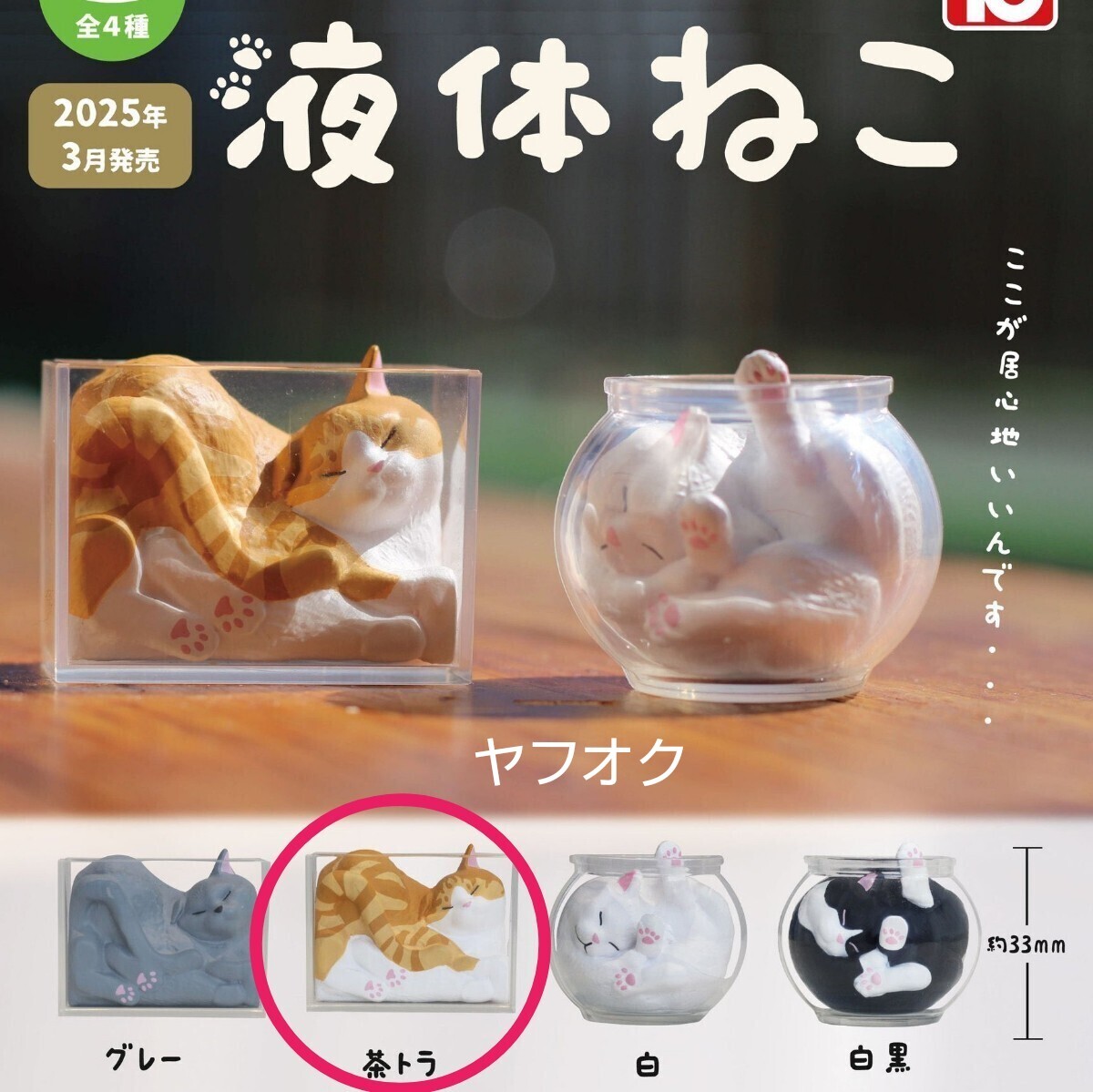 - 新品 液体ねこ 茶トラ カプセルトイ ガチャ ガチャガチャ 猫 ねこ ネコ ミニチュア ミニ フィギュア オブジェ 茶とら 茶白 水槽 金魚鉢