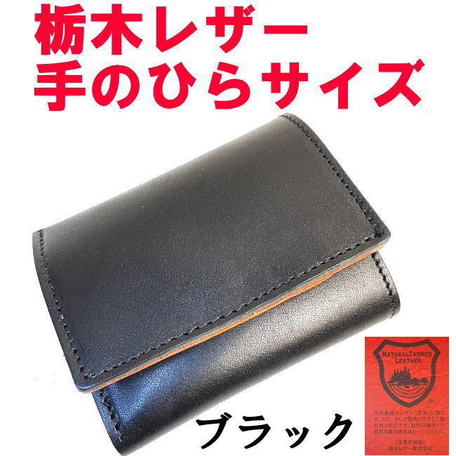 - ブラックとオレンジ 栃木レザーバイカラー 1024 手のひら 三折財布 日本製