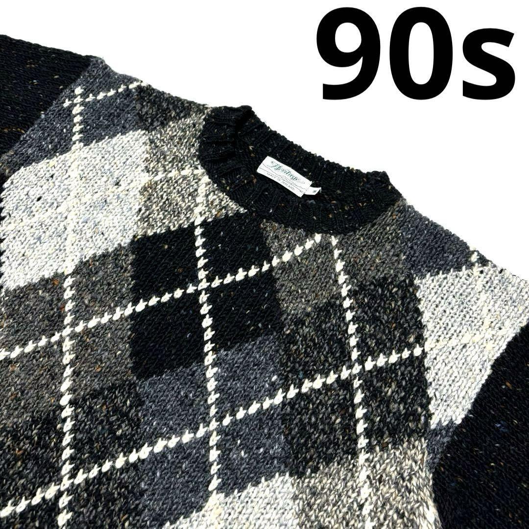 > 90s 極美品 アイルランド製 Heritage アーガイル ニット セーター ヘリテージ ビンテージ ゆるだぼ オーバー ビッグ 古着 男子 紳士 メンズ