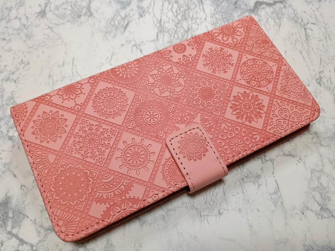 - 送料込み 浮き彫り調 Galaxy A24 用 手帳型ケース アラベスク ピンク