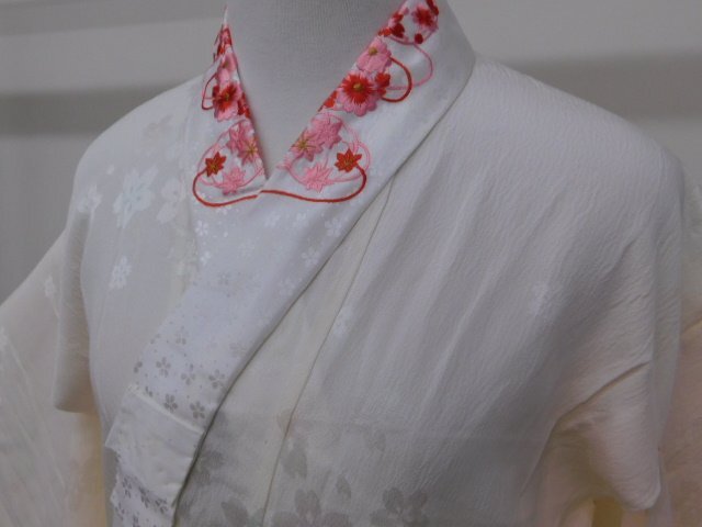 > 〔楽布〕P33034 正絹 楊柳 縮緬 刺繍半付き 襦袢 k