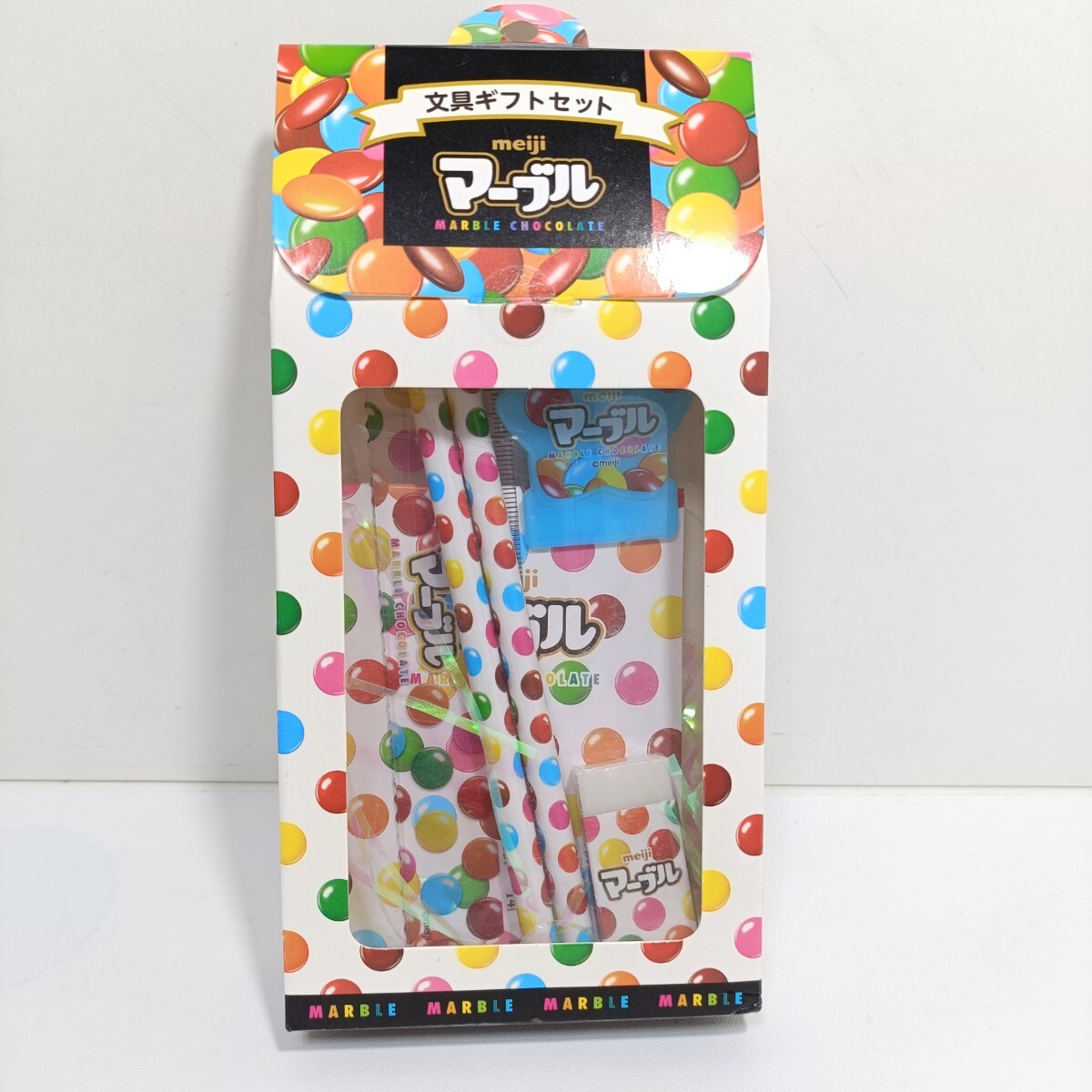 - meiji 明治 マーブル チョコレート 文房具 セット 文具ギフトセット 未開封品 [お菓子 パッケージ 鉛筆 定規 メモ帳 クリップ 消しゴム]