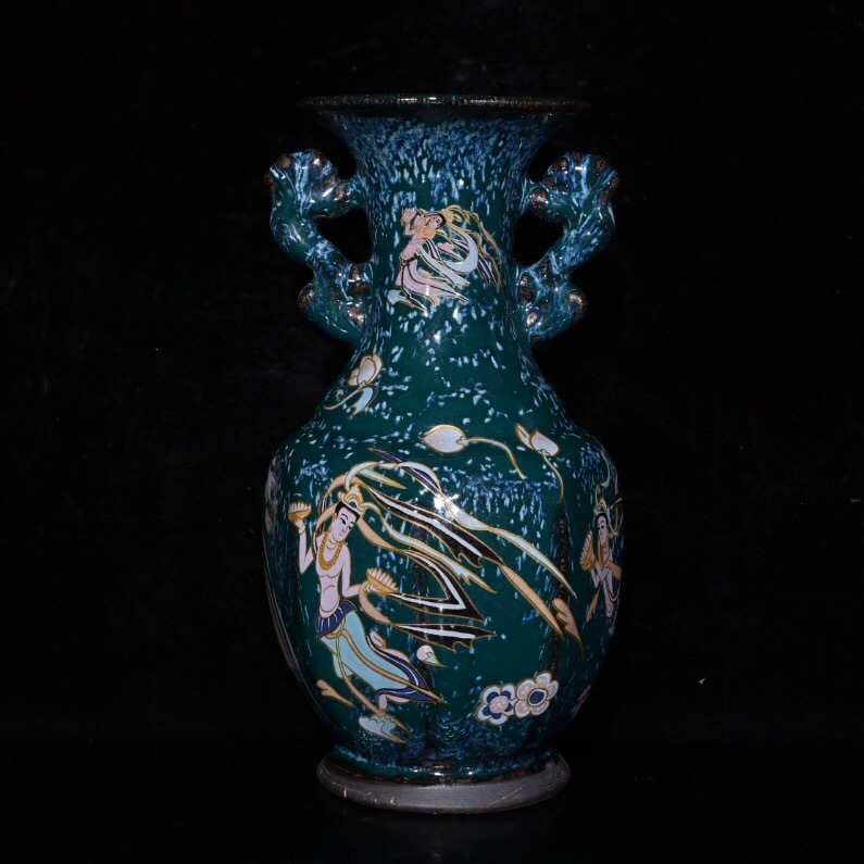 - ▽鴻▽ 宋 建窯 五彩 飛天紋 雙耳瓶 古陶瓷品 置物 古賞物 中国古玩 中国古美術