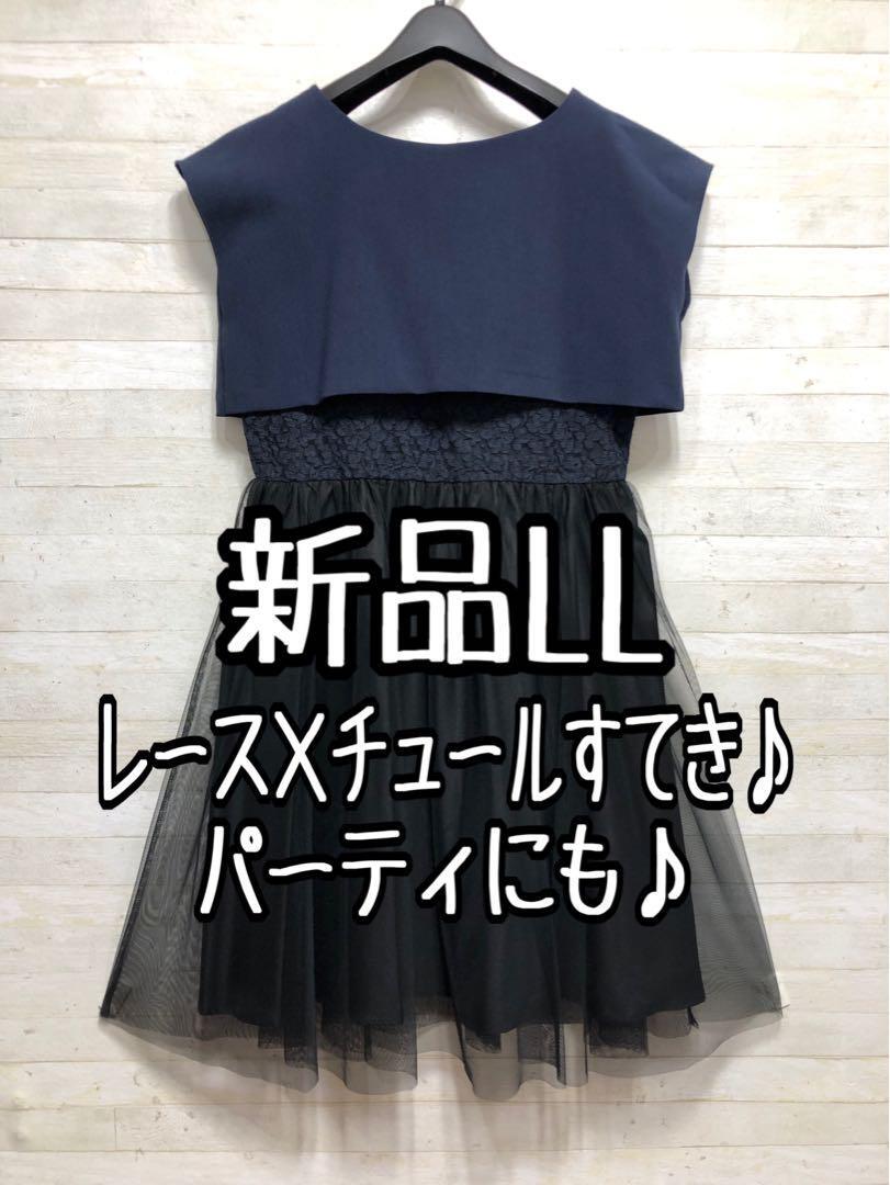 - 新品☆LL紺系♪レース切替ワンピース&ショート丈トップス♪パーティにも〇D641