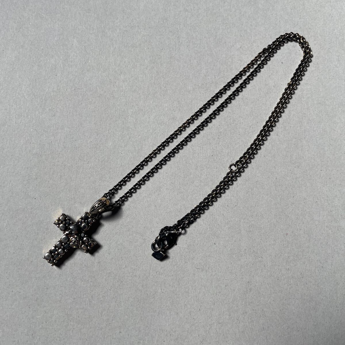 > LION HEART ライオンハート ロクサーヌ シルバー950 sterling クロス スカル 薔薇 ネックレス デザイン チェーン ブラック 黒