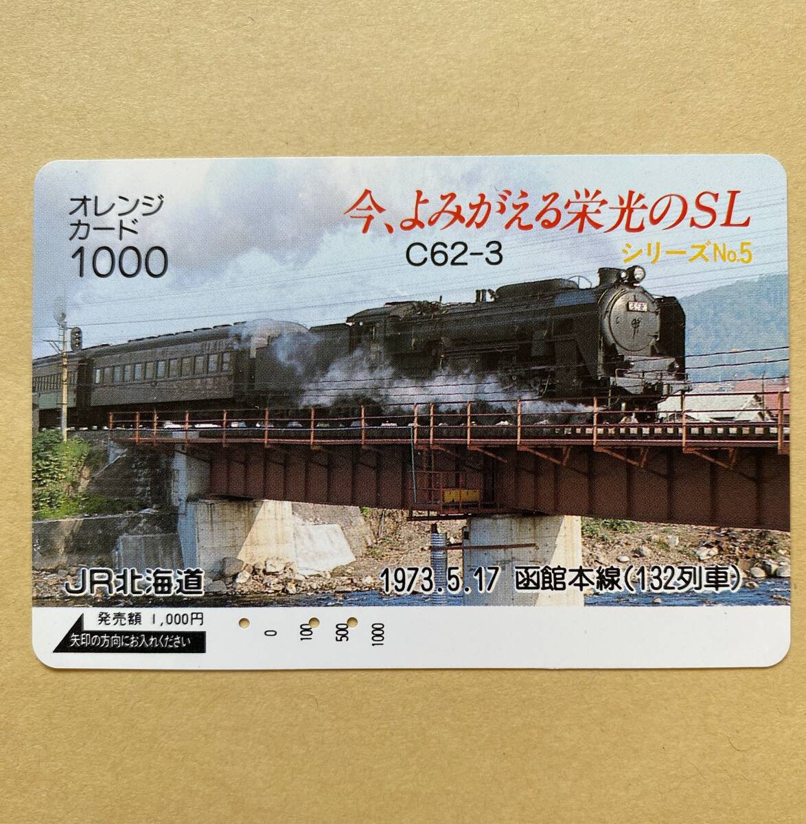 - 【使用済】 オレンジカード JR北海道 SL 今、よみがえる栄光のSL C62-3 シリーズ№5 1973.5.17 函館本線(132列車)