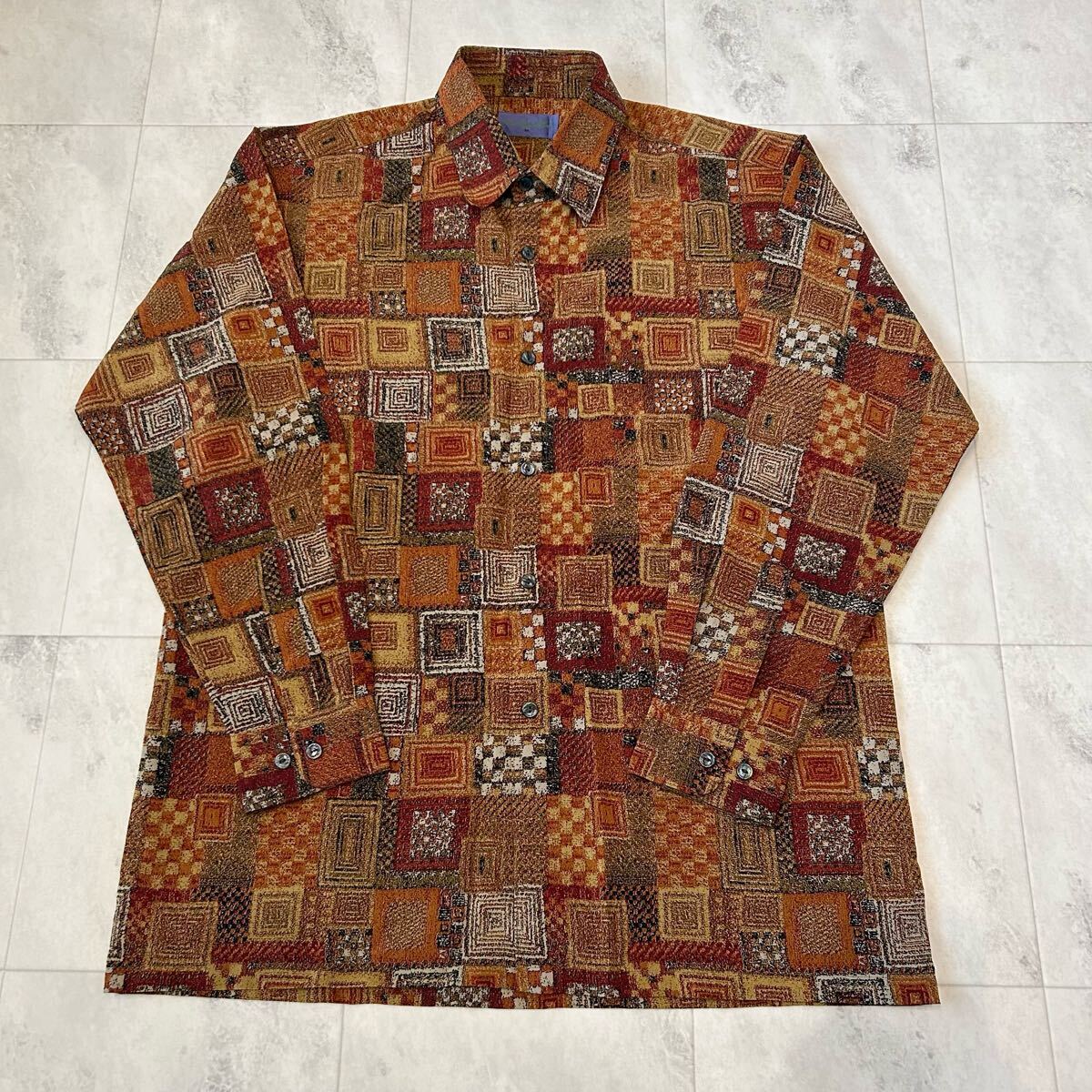 - Art Fish Club 総柄 柄シャツ レトロ アート ビンテージ 長袖シャツ ポリエステル100%
