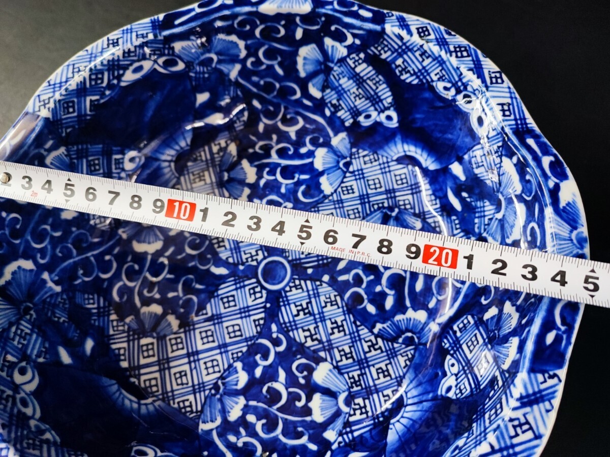 - 【明治時代「ベロ藍染付皿」手染皿/深皿/和食器/藍染皿/】
