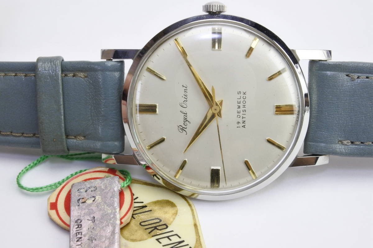 > ☆オリエントの最上位モデル 1960年代頃製 ROYAL ORIENT 19石ANTISHOCK 静電気防止 手巻紳士腕時計 デッドストック品