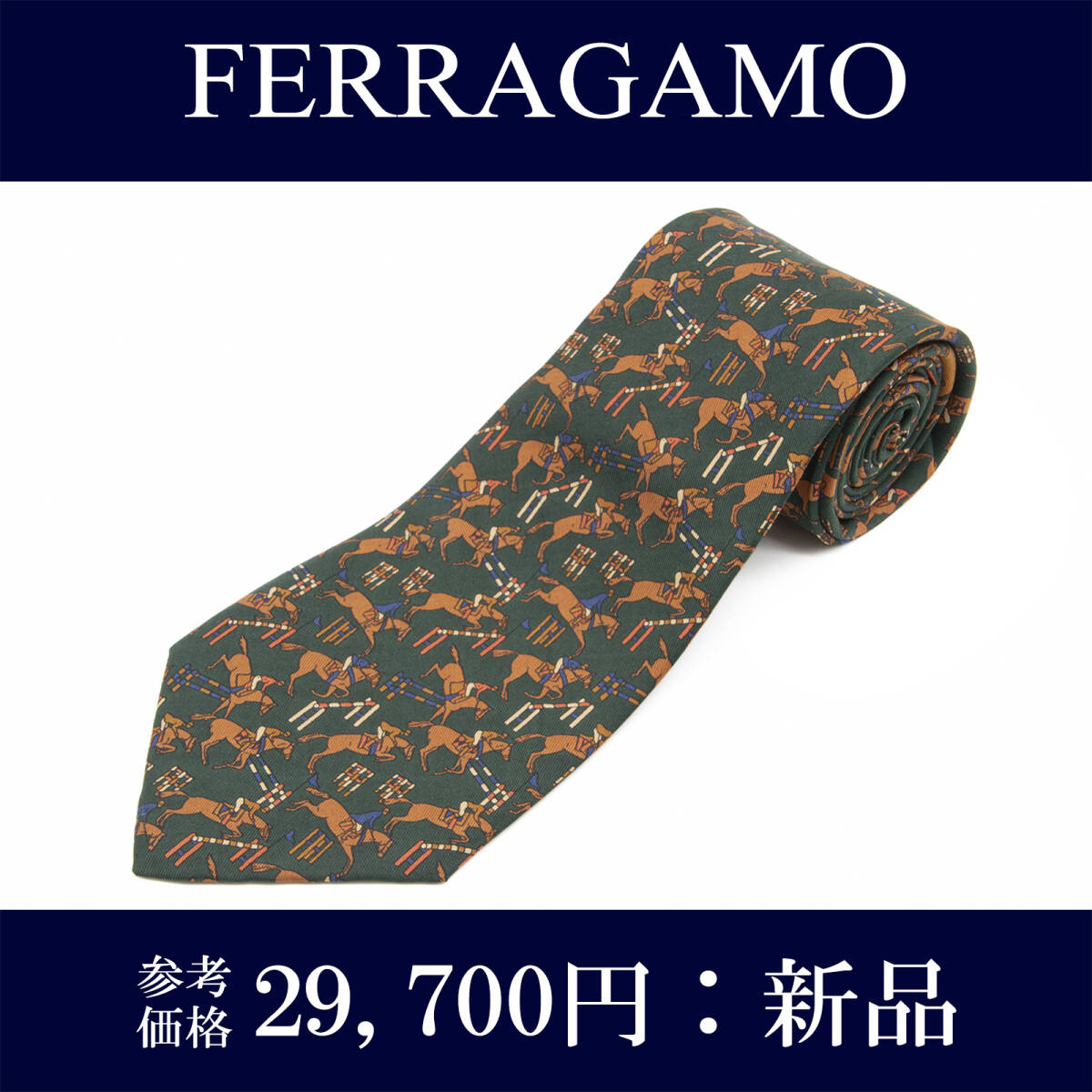 > 送料無料 フェラガモ ネクタイ 新品 シルク 緑 茶色 青 赤 珍しい 乗馬 ホース 動物 アニマル ブランド おしゃれ イタリア製 綺麗 N570