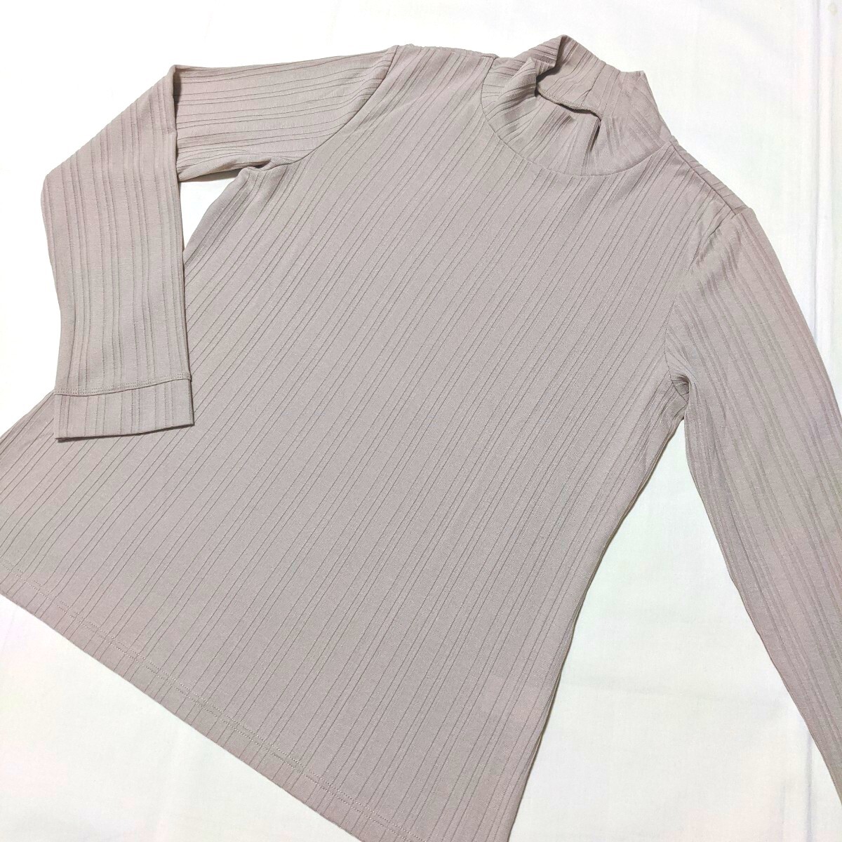 - ☆PO31 Charle シャルレ レディース 2 M 長袖 Tシャツ カットソー ベージュ ストライプ ボトルネック タートルネック