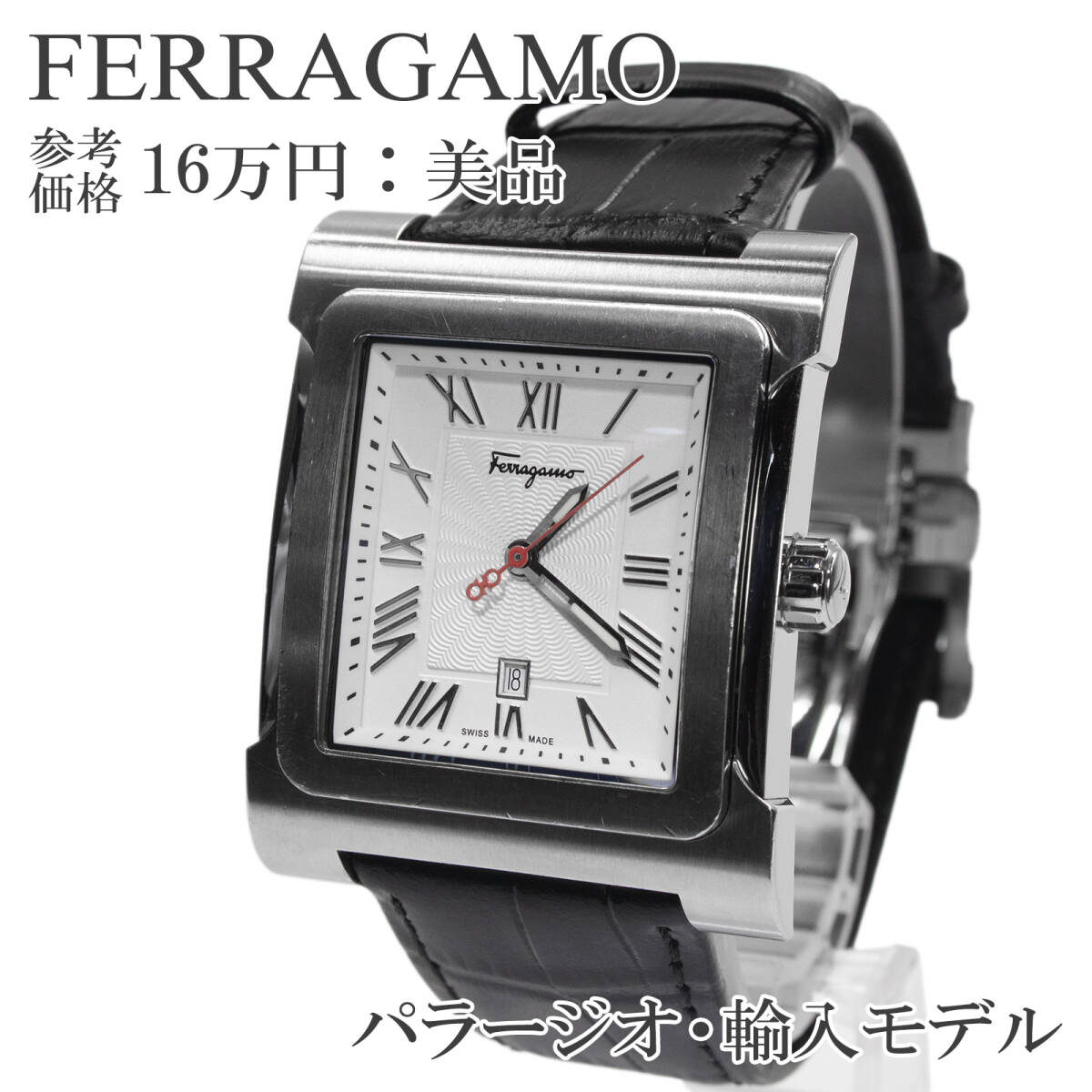 - 送料無料 フェラガモ 腕時計 メンズ パラージオ 白 ホワイト 黒 ブラック 珍しい 四角 ロゴ マーク 本革 レザー 輸入モデル おしゃれ Q081