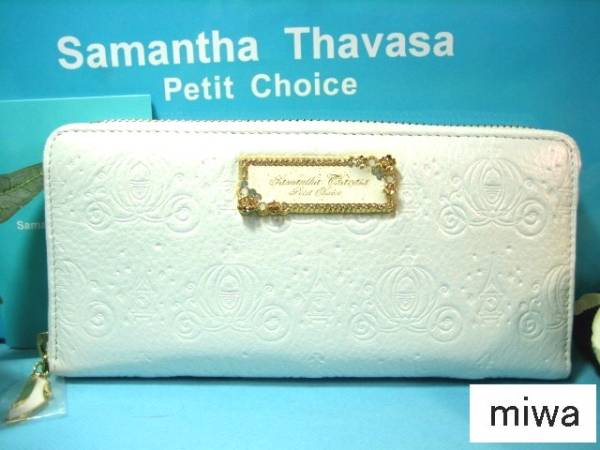 > 送無料 60%引 サマンサタバサ 限定 シンデレラ 型押 牛革 ラウンドジップ 長財布 パール ホワイト 未使用 証明書付 ディズニー プリンセス