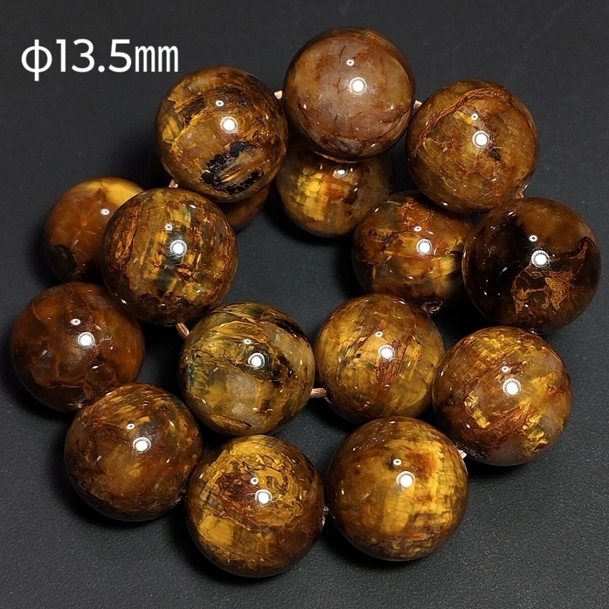 - イエローピーターサイト ブレスレット 13.5㎜ 17.5㎝ テンペストストーン シャトヤンシー