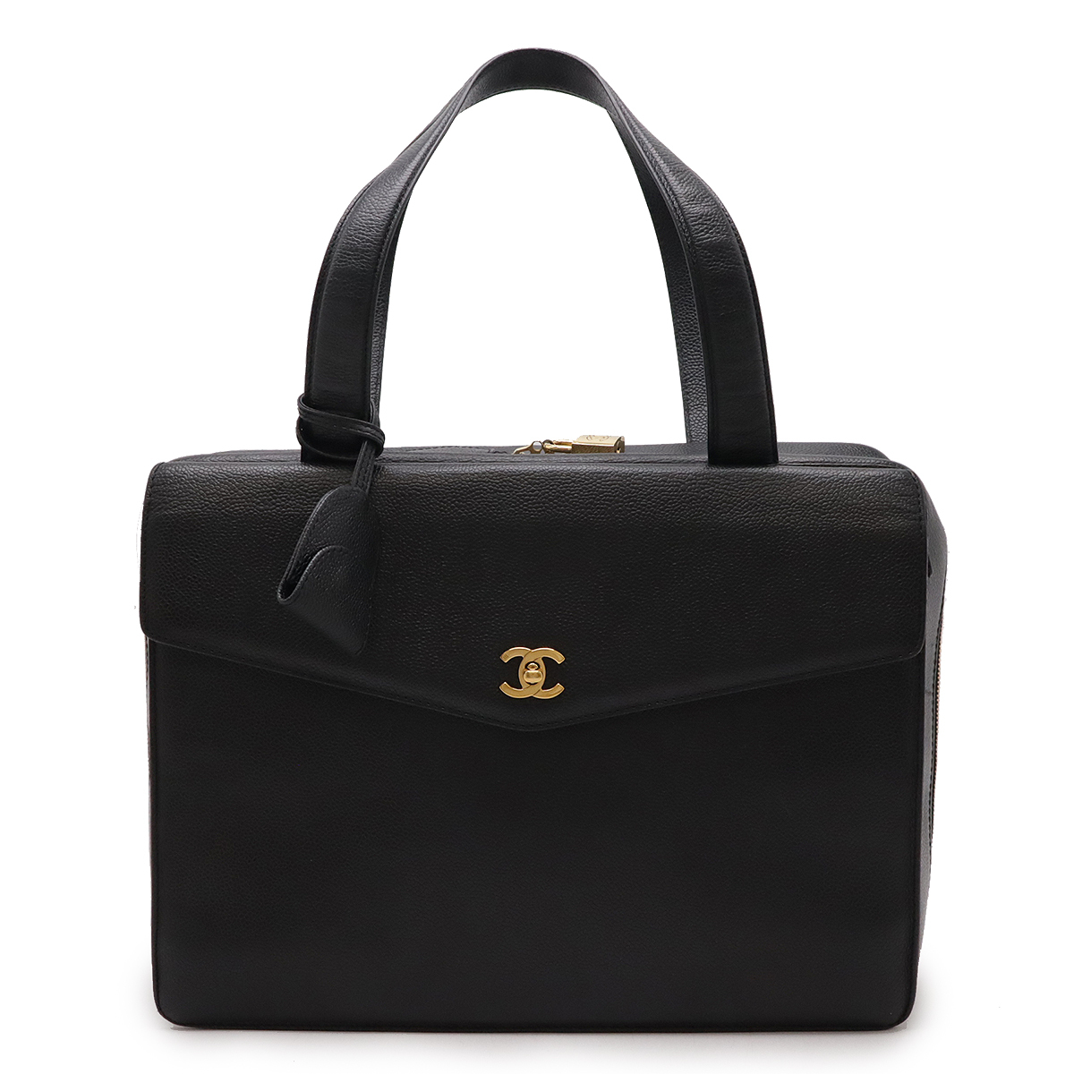 - CHANEL シャネル ココマーク ビジネスバッグ ブリーフケース 書類カバン キャビアスキン レザー ブラック 黒 ゴールド金具