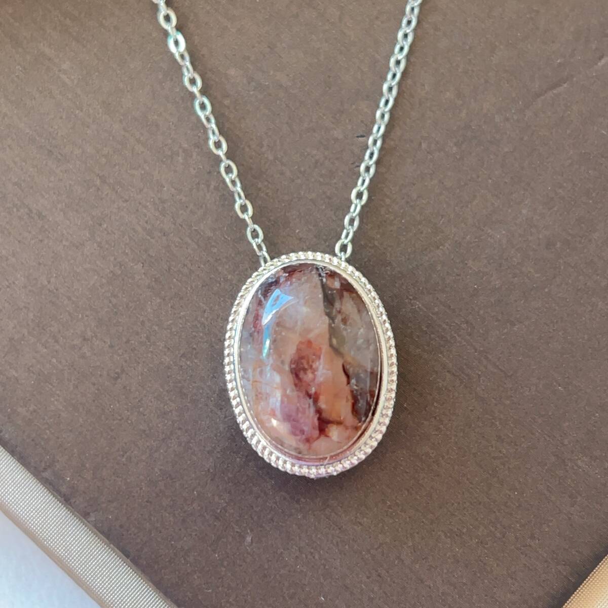 - 訳あり◇タンジェリン・クォーツ◇パワーストーン◇ネックレス ペンダント◇水晶◇天然石◇巾着袋付き◇プレゼントにも036P3205