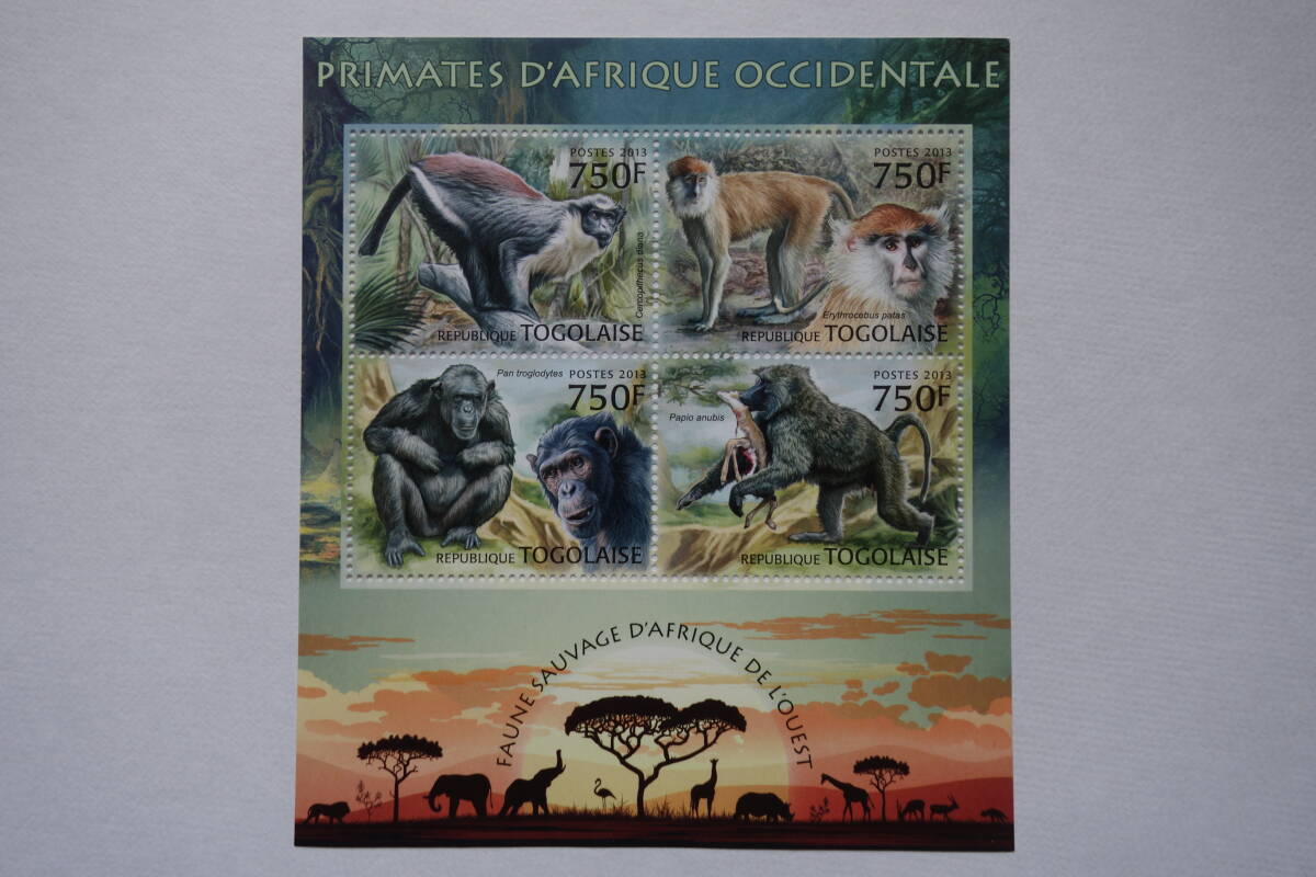- 外国切手: トーゴ切手 「西アフリカの動物・サル」4面m/s 未使用