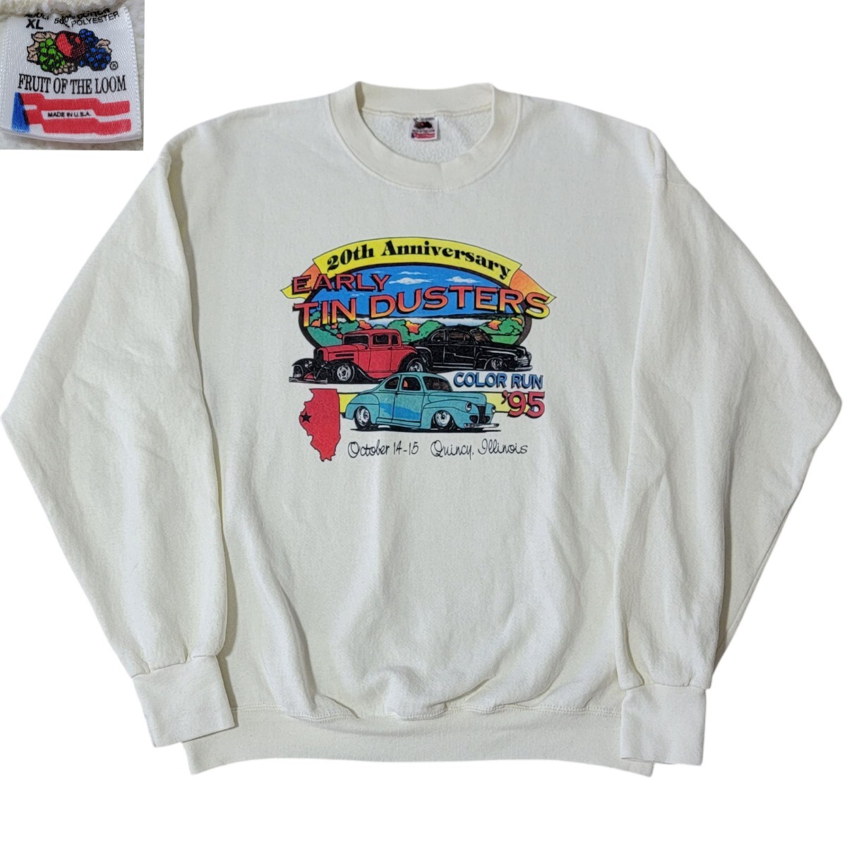 - 【ほぼ未使用】90S アメリカ製 フルーツオブザルーム FRUIT OF THE LOOM 20周年記念 クラシックカープリント スウェット XL トレーナー
