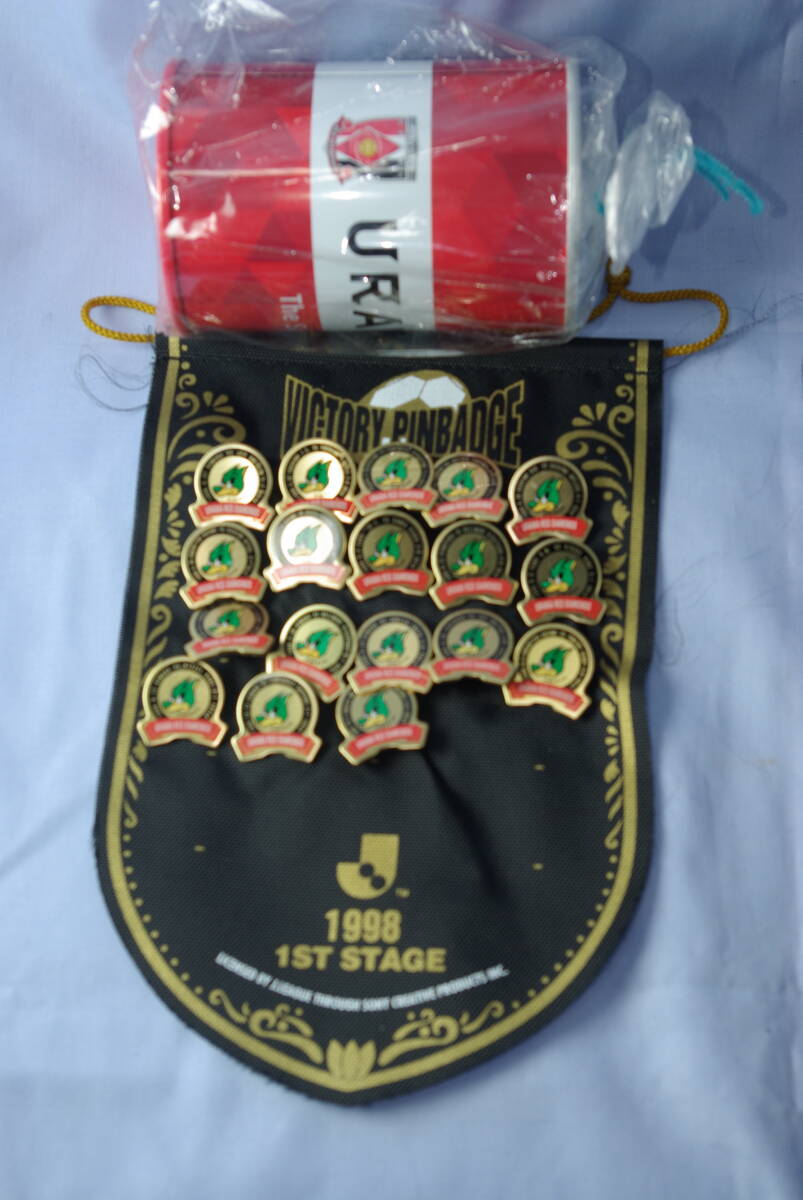 - 浦和レッズ、貯金箱缶とピンバッチ2点セット