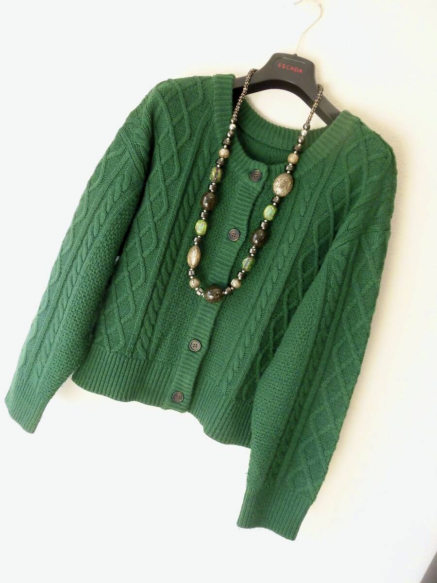 - ●格安「FREAK'S STORE」/緑グリーン 立体アラン紋様 ドルマン袖ニットカーディガン/サイズフリー