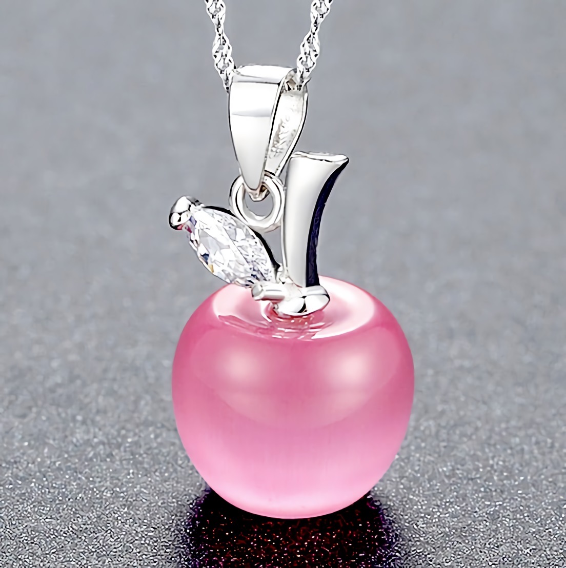 - 新品★送料無料★幸運の林檎 ピンクキャッツアイ プラチナ仕上 925シルバーネックレス誕生日プレゼント旅行連休春花見ギフト国内発送