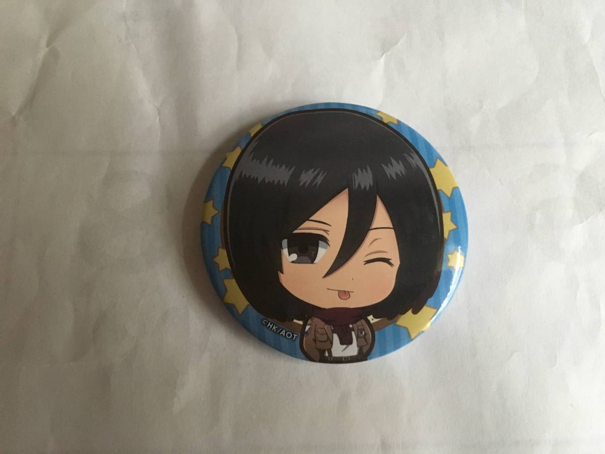 - 進撃の巨人 てへぺろ 缶バッジ ミカサ 3個あり