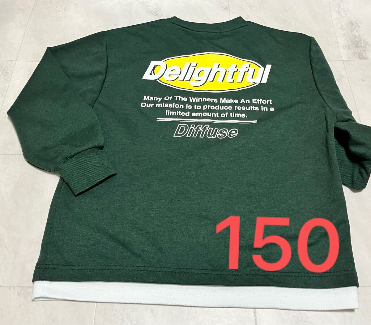 - 重ね着風 150 スウェット トレーナー グリーンホワイト 裏起毛ではないです。