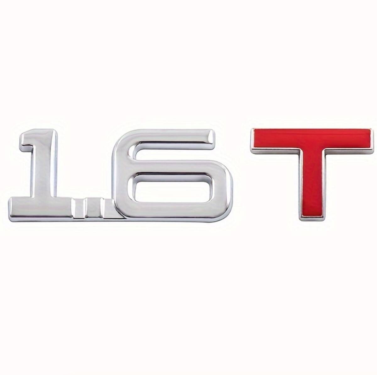 > エンブレム おしゃれ 金属 1.6T シルバー レッド メタルステッカー 立体 8cm 3D 車用 ロゴ 簡単貼り付け オートバイ 外装 シール t5506