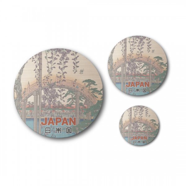 - 日本製 浮世絵 ステッカー 3点セット 丸型 橋 ヘアライン マット 新品 日本の美しさ お土産 プレゼント おしゃれ シンプル 和柄 着物 歴史