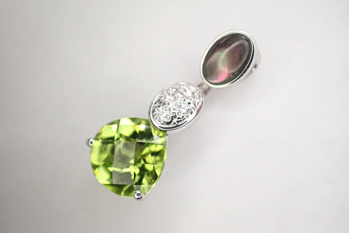 - 17/美品 田崎真珠 タサキ K18WG ペリドット ダイヤ ペンダントトップ