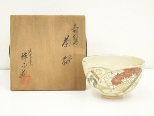 > ys7293110; 宗sou 京焼 清閑寺窯 杉田祥平造 色絵仁清扇面画茶碗(共箱)【道】