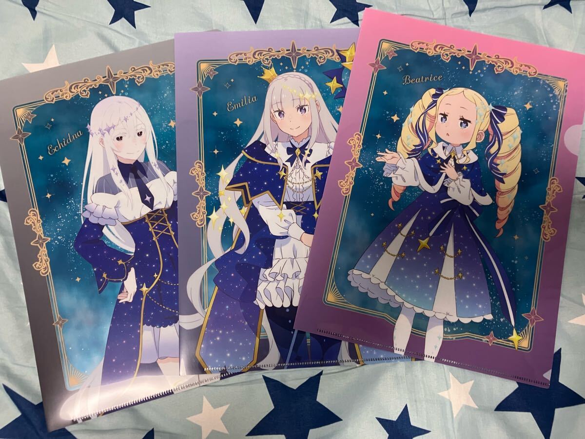 - 3枚セット【Re:ゼロから始める異世界生活】エミリアの誕生日生活 2024 渋谷マルイ クリアファイル エミリア エキドナ ベアトリス