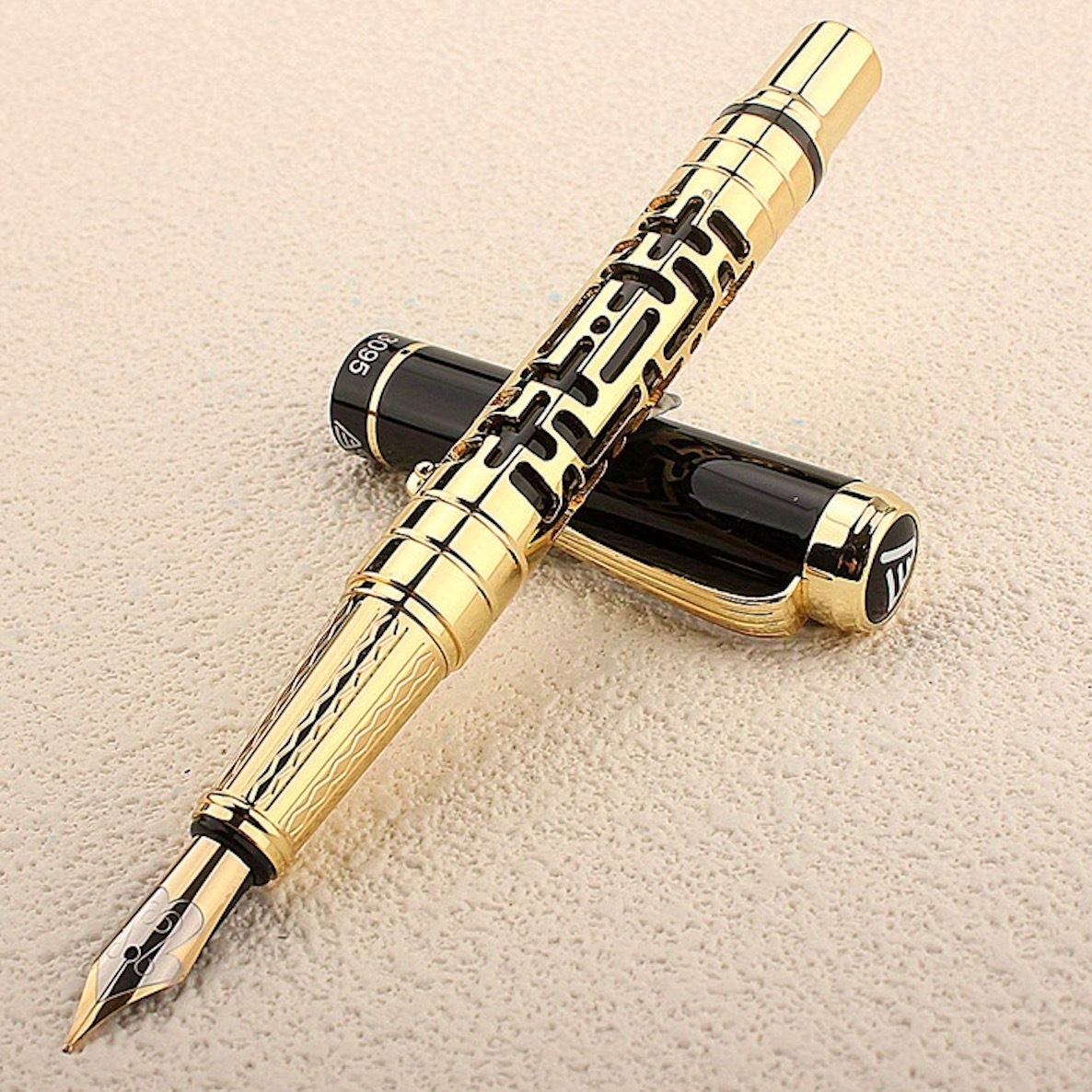 - 万年筆 おしゃれ ブラック ゴールド 金属 13.9cm 中字 シンプル 高級感 プレゼント ギフト 書きやすい 普段使い ビジネス 仕事用 t5569